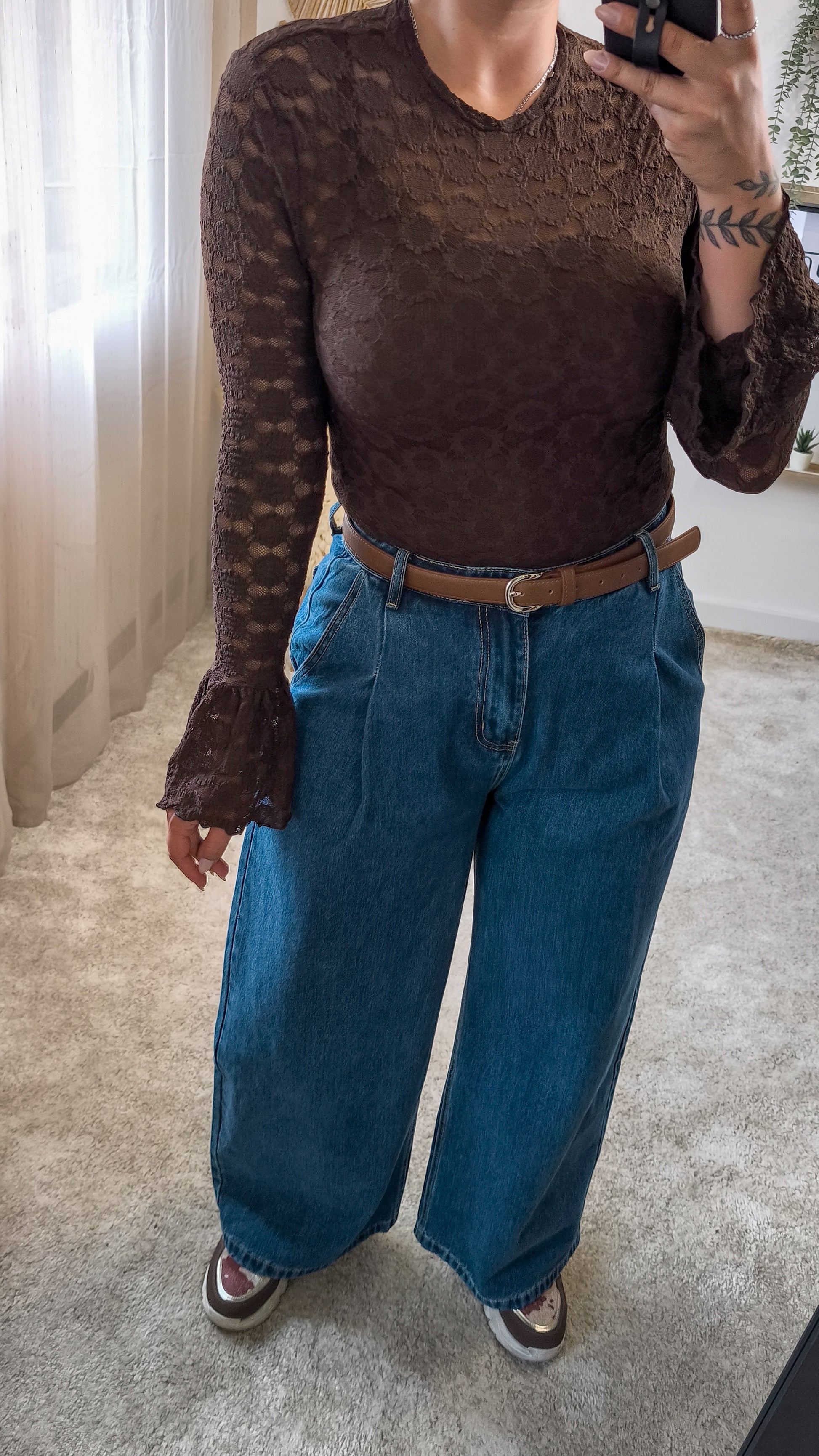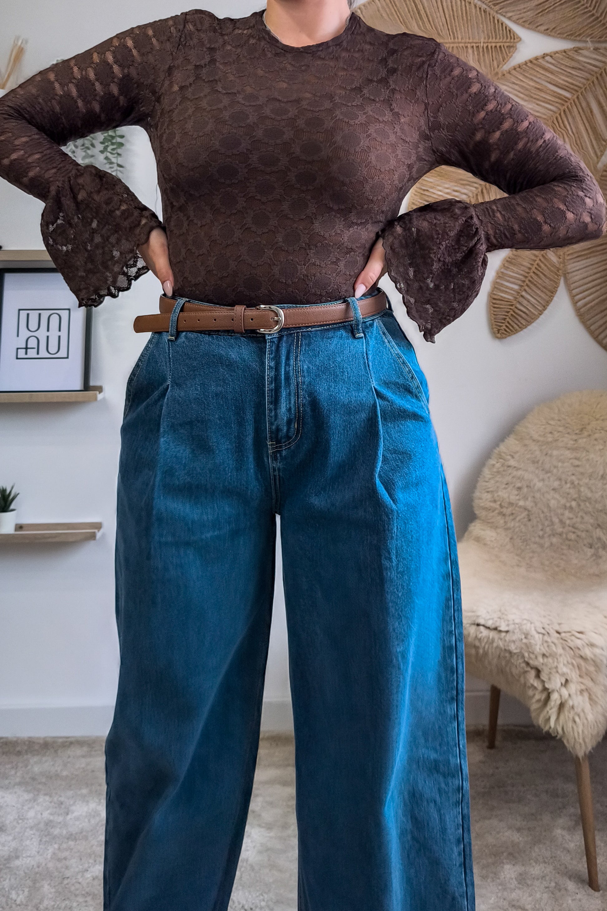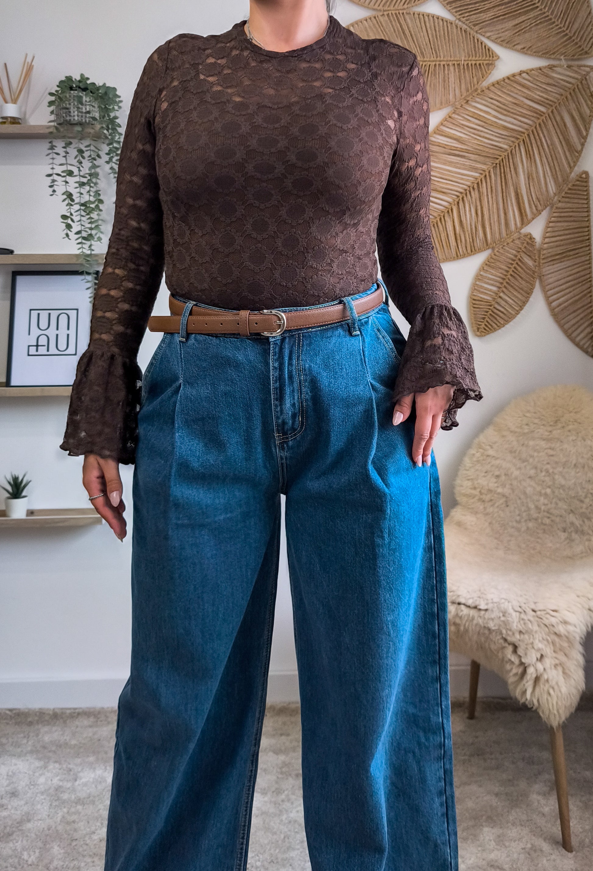 Adoramos vê-la com denim wide leg! Um contraste descontraído mas cheio de atitude.