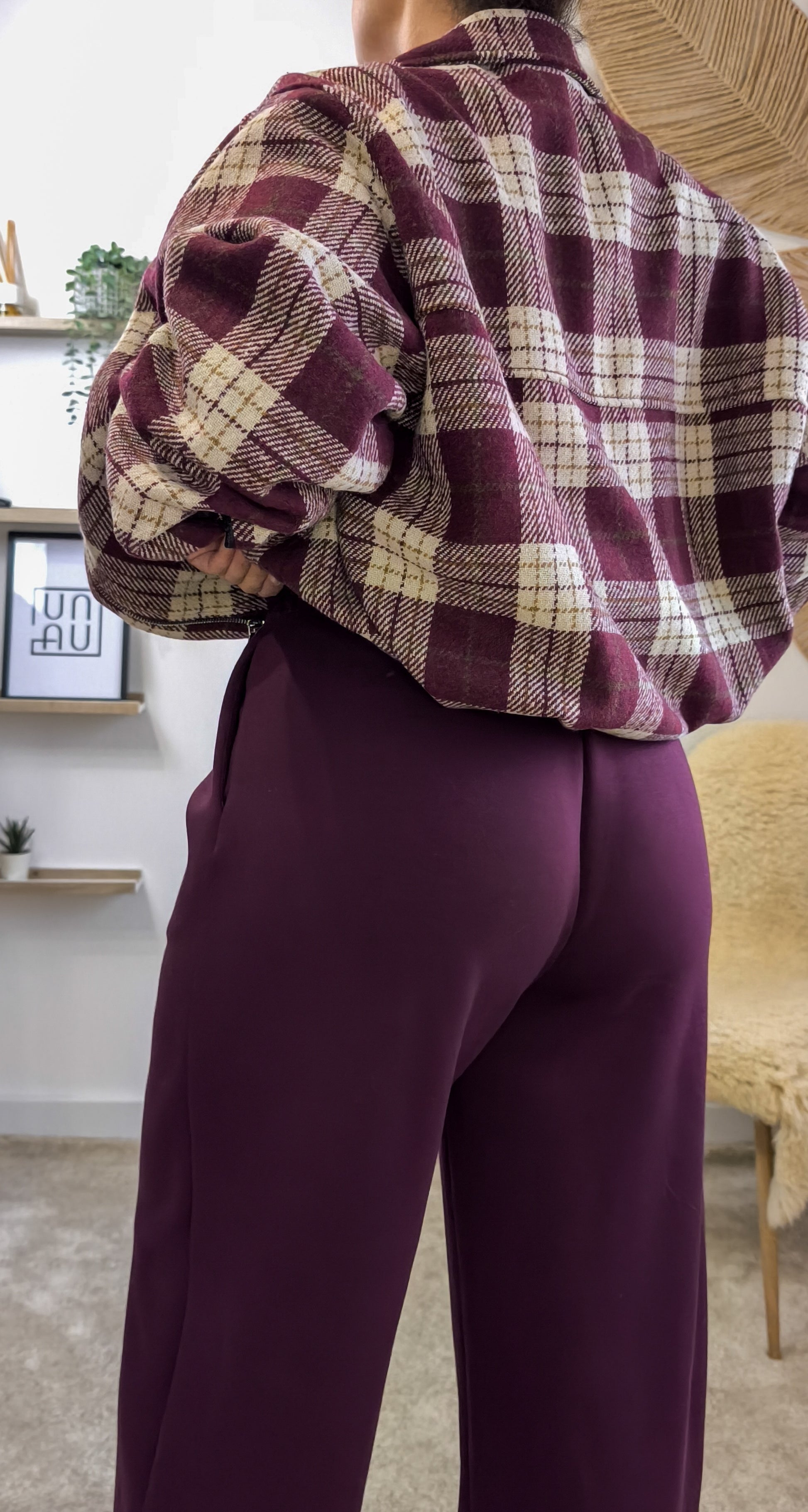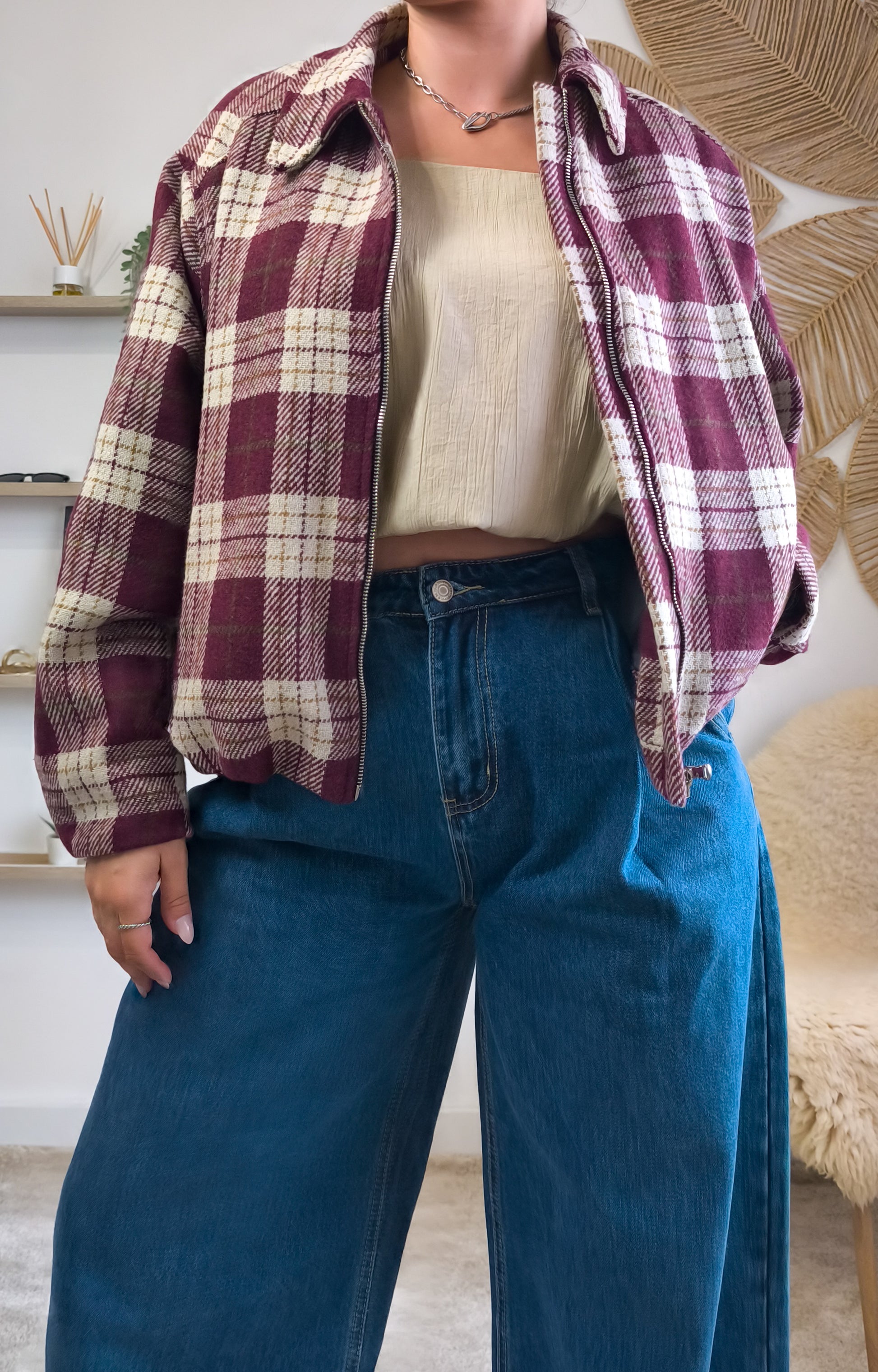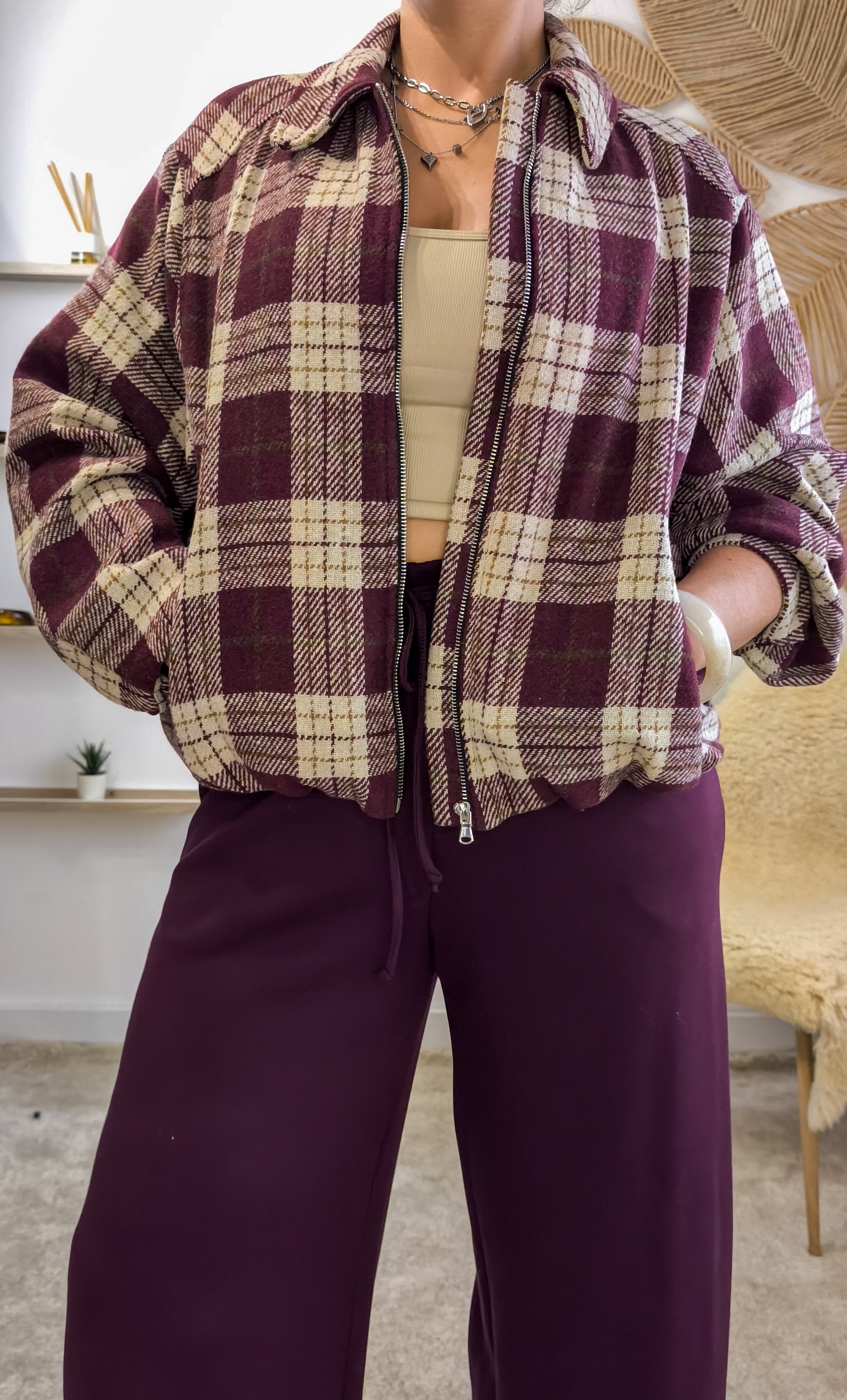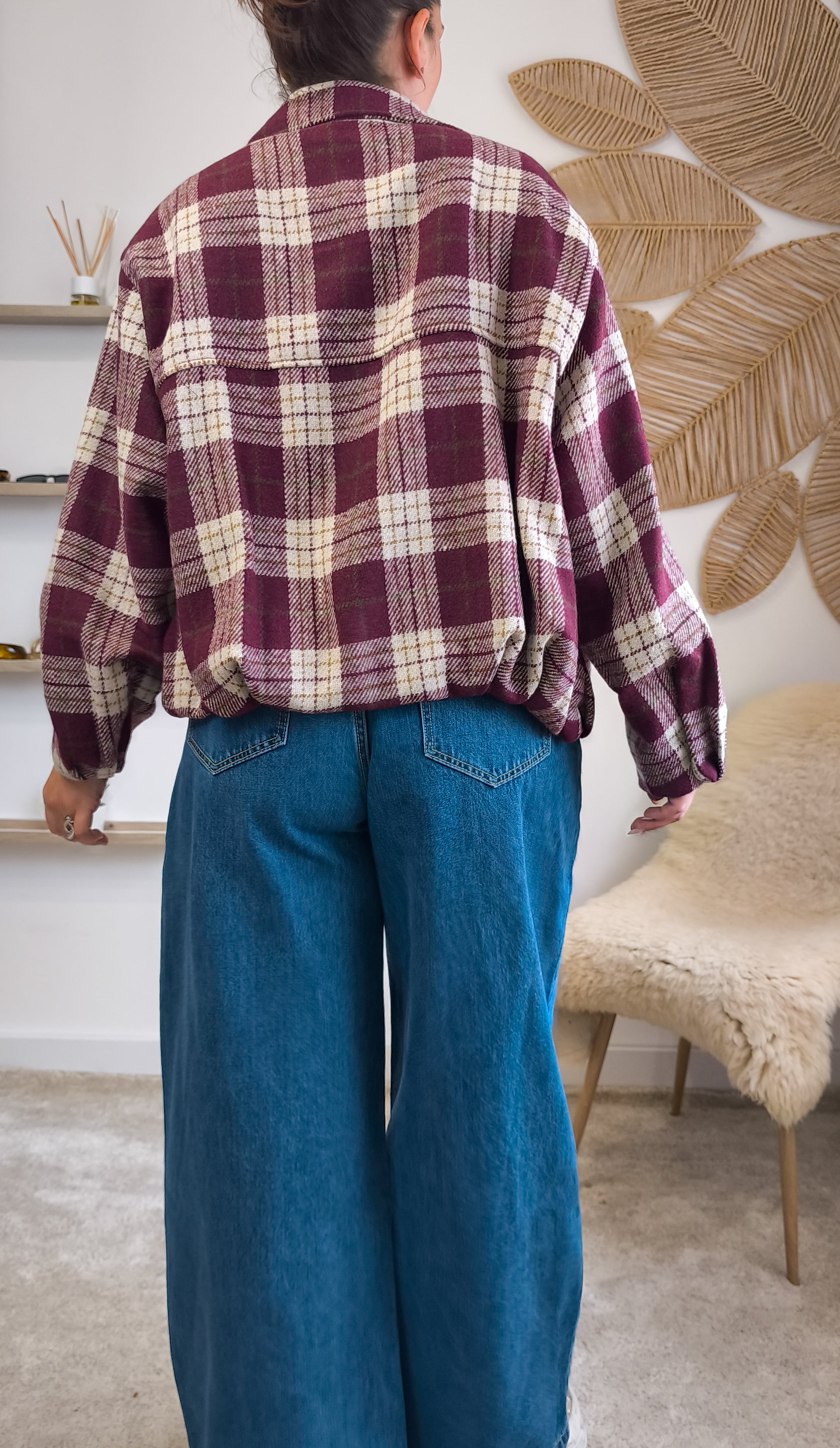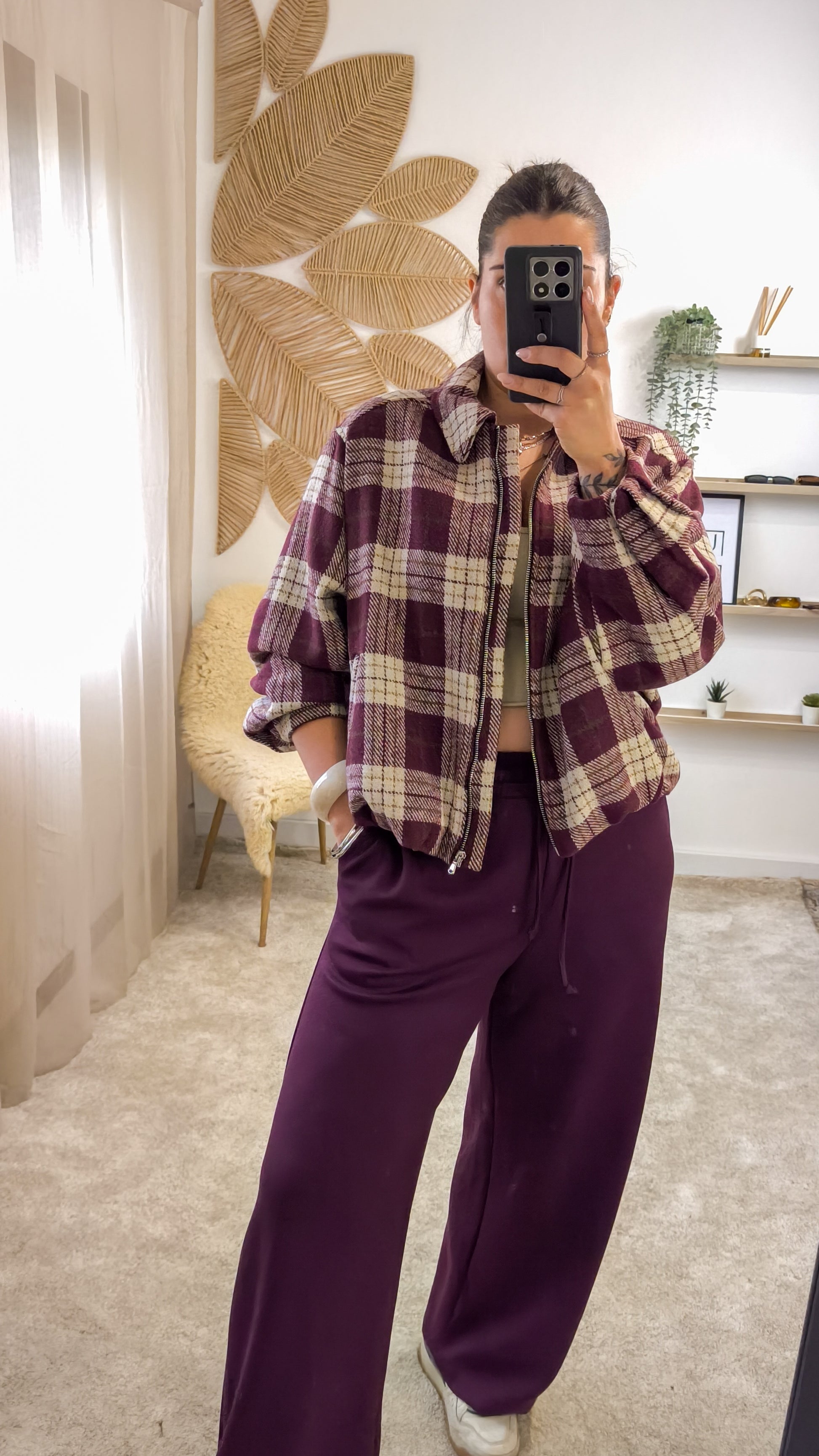 - Padrão xadrez em bordô e cru, impossível de ignorar