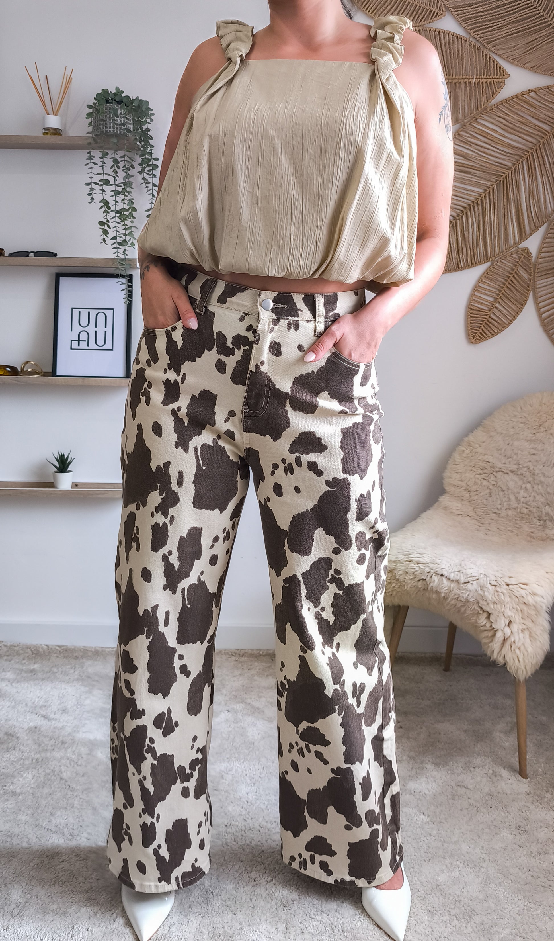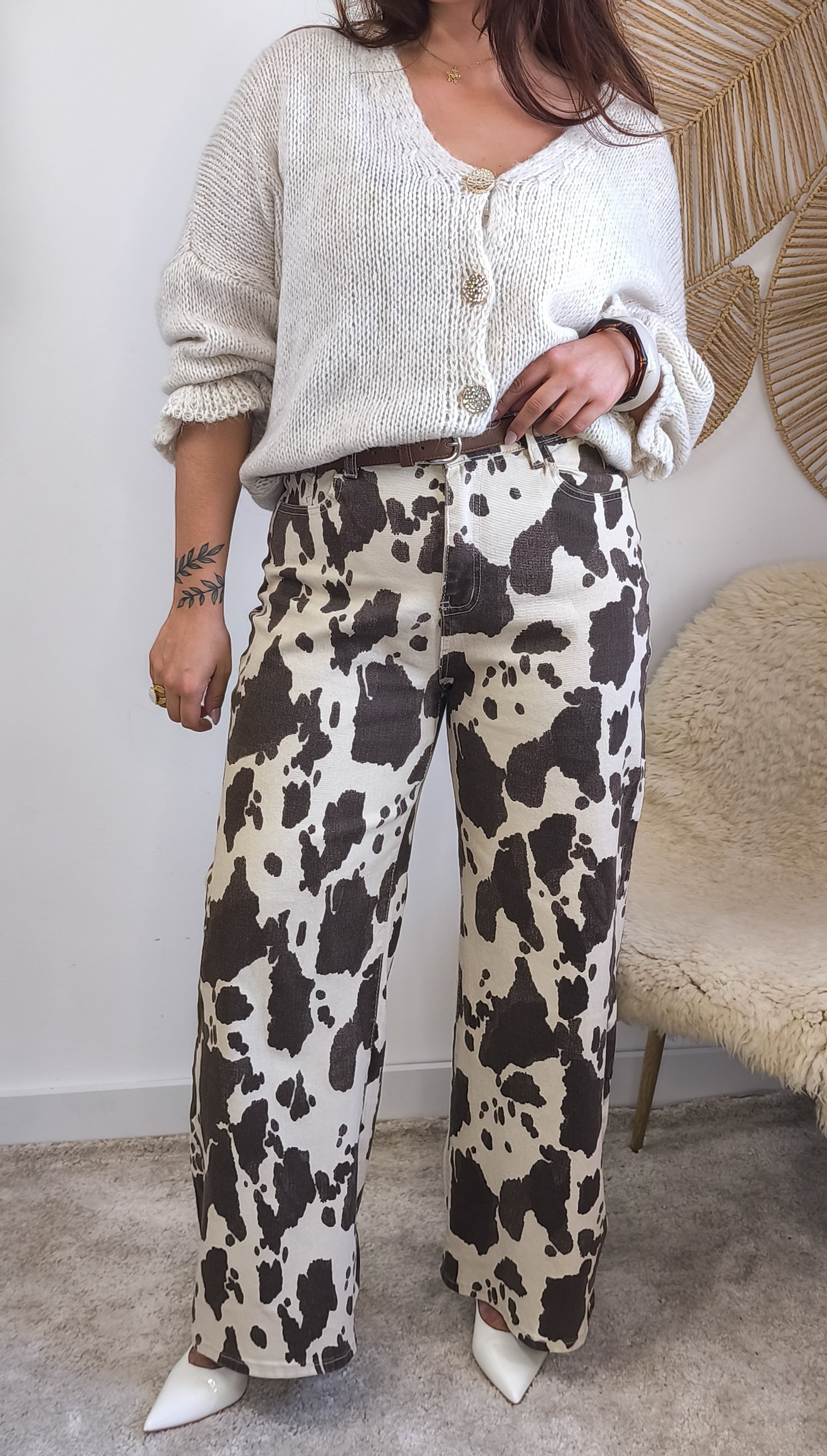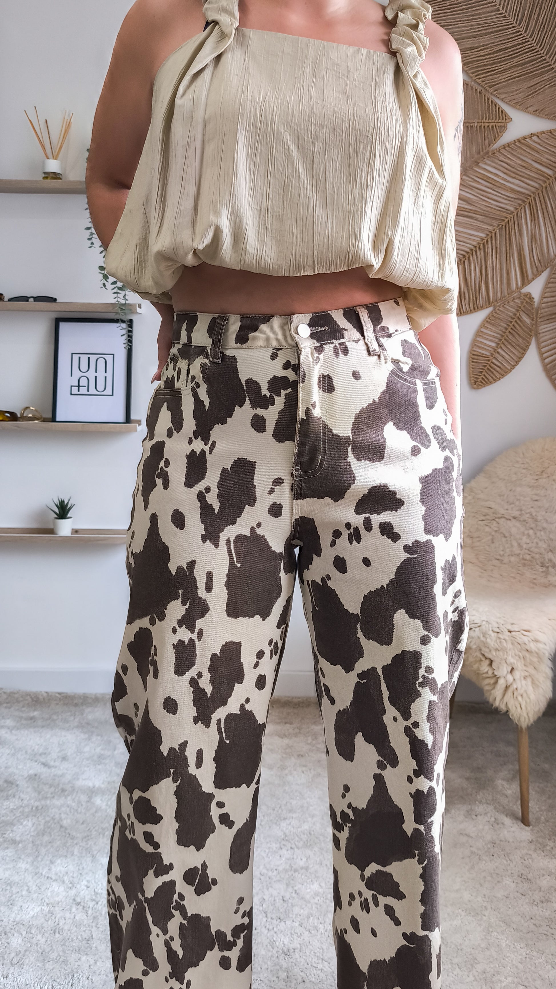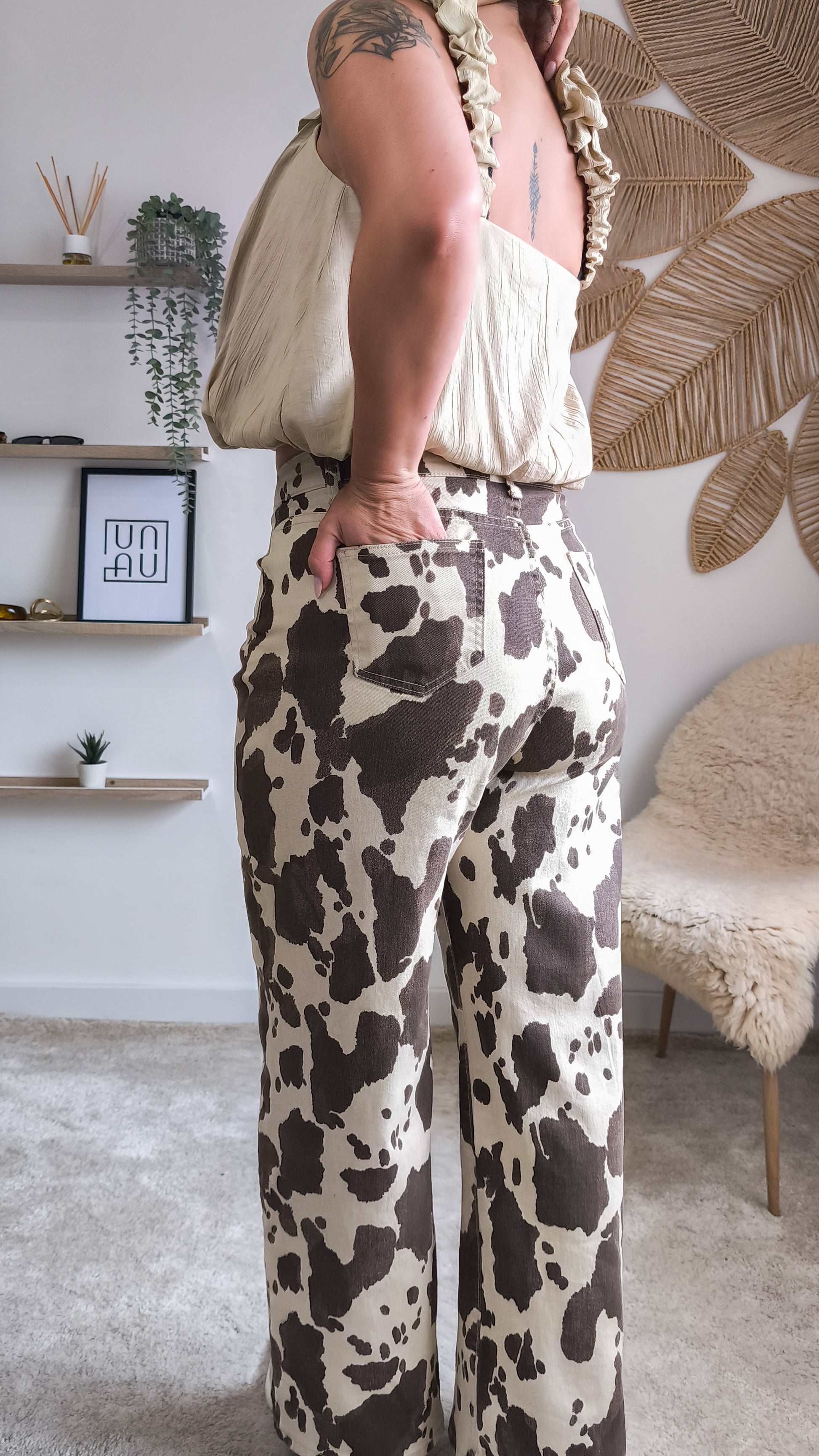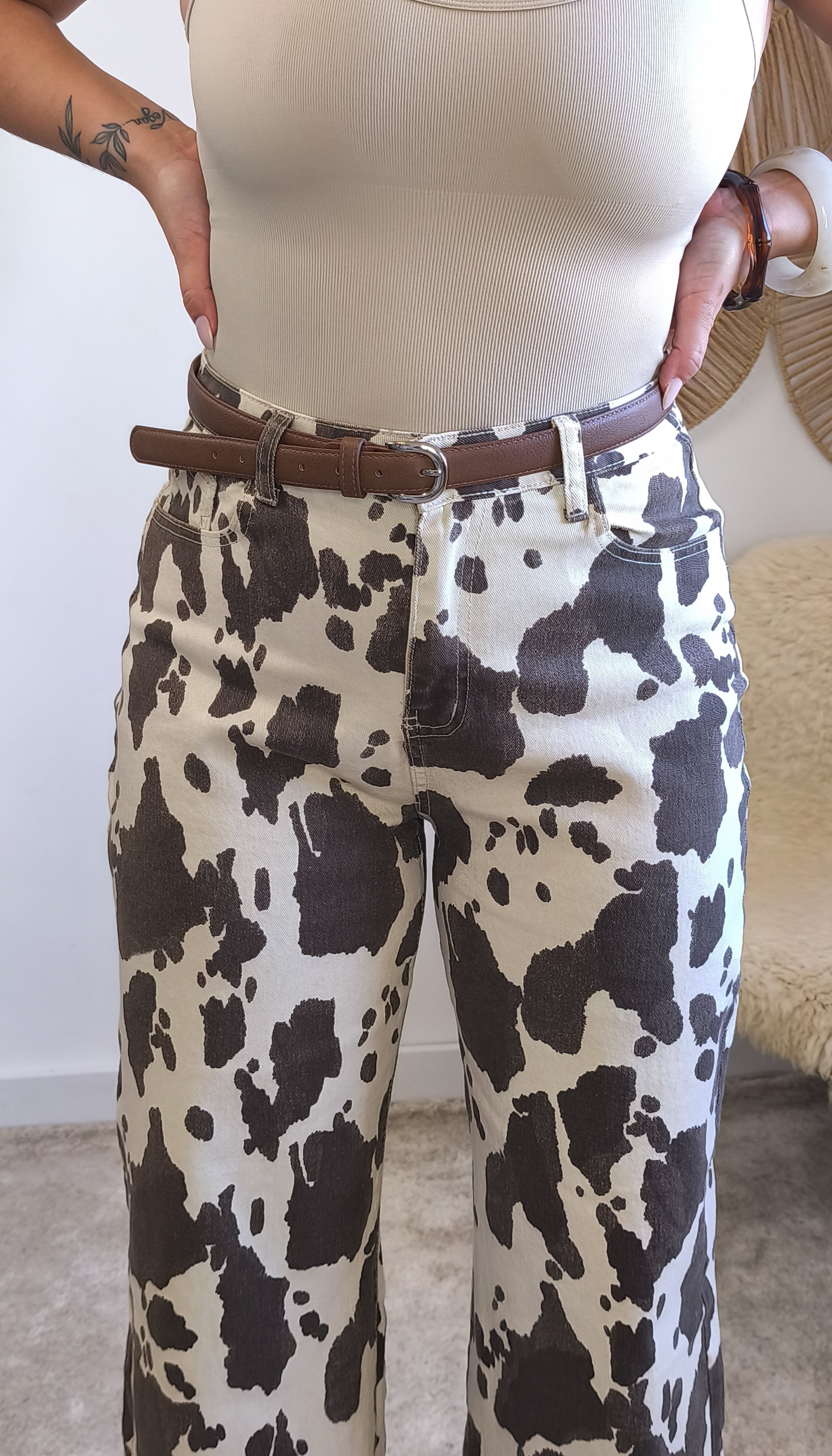 - Padrão animal print cow em castanho e cru